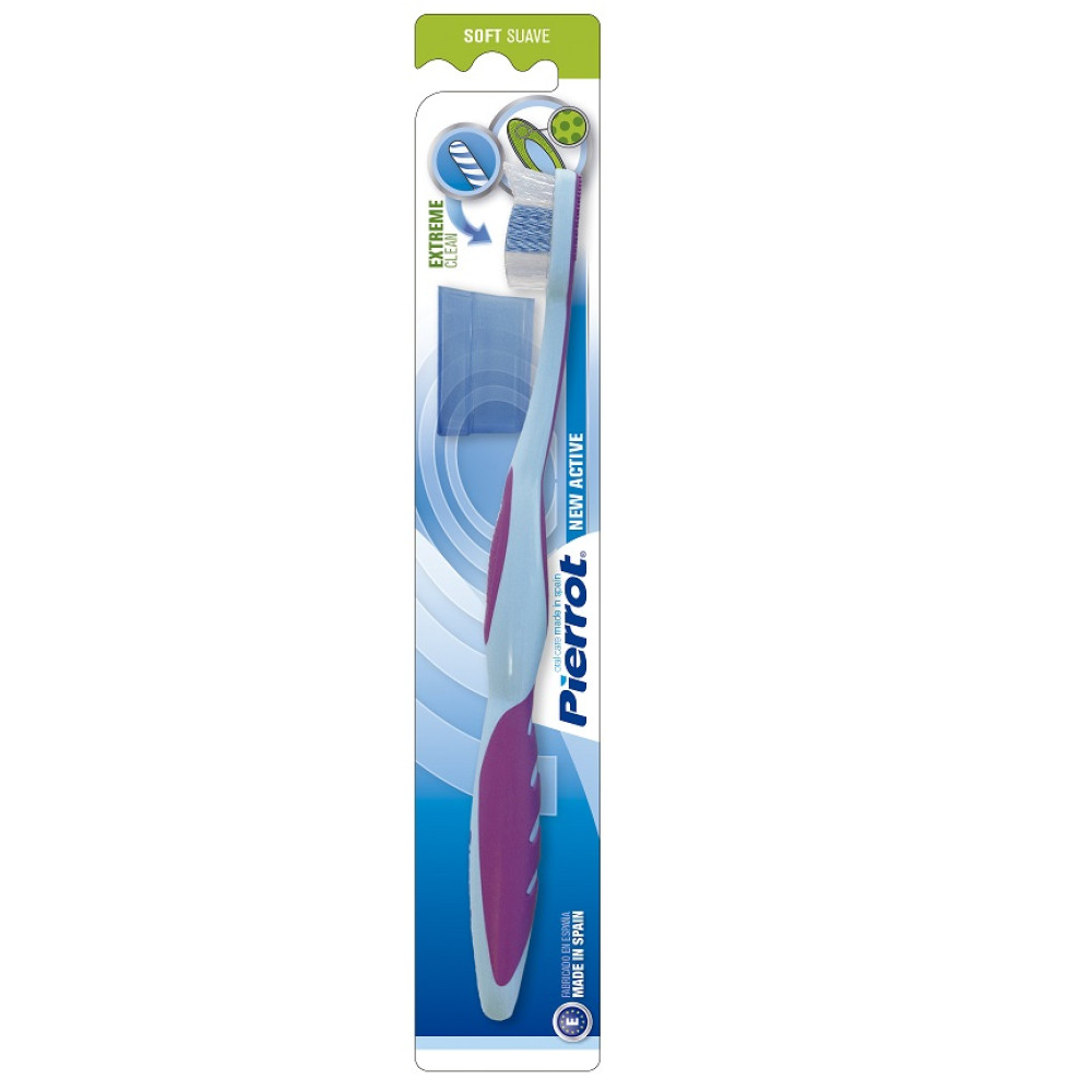 Щітка Новий Актив з подушечкою для чищення язика володіє всіма якостями найбільш затребуваних зубних щіток Pierrot, а також має особливості, що відображають останні тенденції ринку.