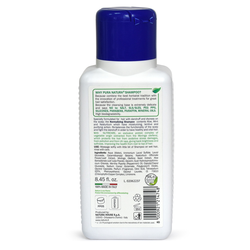 Особливості: спеціально розроблена формула шампуню Normalizing ECO SHAMPOO для волосся з лупою та проти сухості шкіри голови. Містить екстракт алое, м'яти та настурції, які мають зволожуючу, заспокійливу та очищуючу дію. Відновлює баланс шкіри голови та захищає від лупи, повертаючи волоссю здоров'я та життєву силу.